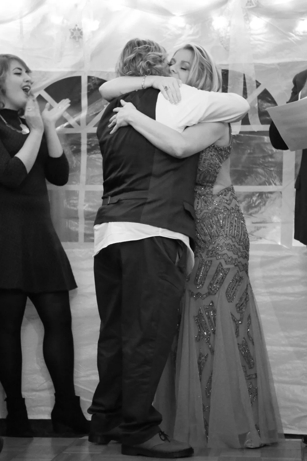 After losing all day light, we headed to the wedding site which was at the home of Becky's brother who lives up the street from the lake. As Beth and Becky greeted all of their closest friends and family at the door with hugs, I couldn't help myself from getting the feels. You could feel and see the emotion in their eyes at their happiness and gratefulness for each of their guest's presence that day.